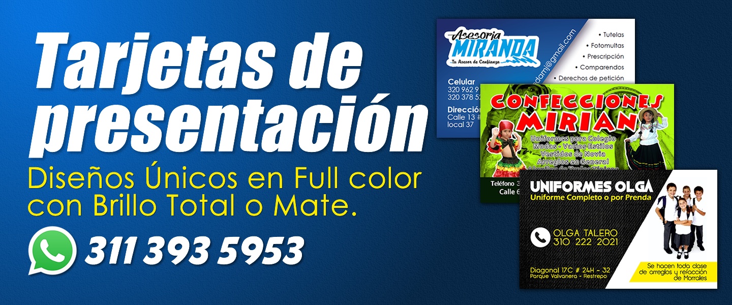 Por eso ofrecemos la posibilidad de manejar todo el diseño alrededor de su marca, Logo, Pagina Web, Tarjetas de presentación y demás; tiene inquietudes, no dude en contactarnos Whatsapp 3113935953