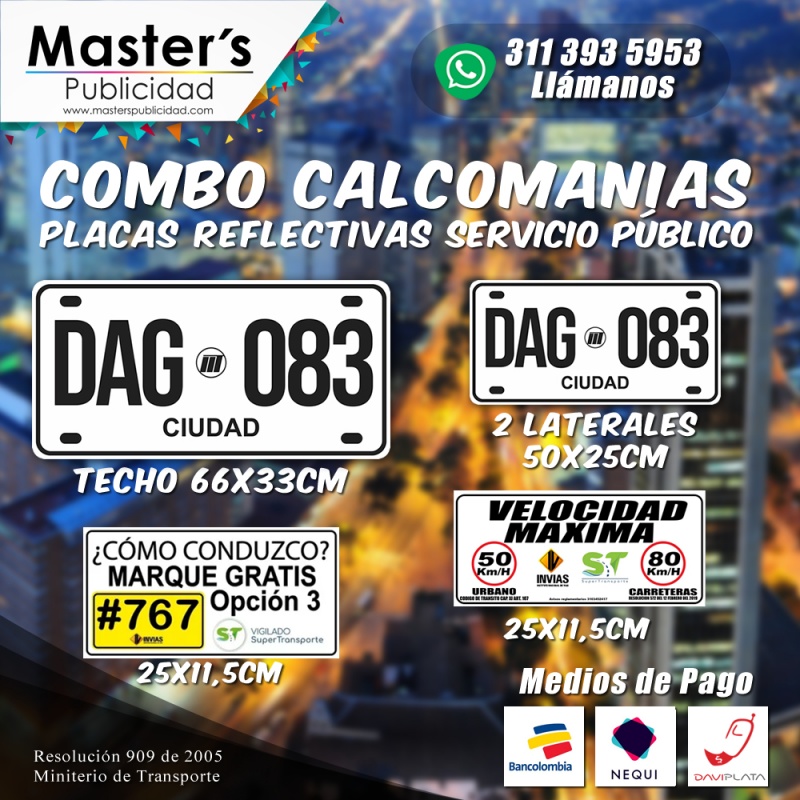 Placas reglamentarias para servicio publico en Colombia, acordes a la resolución 909 de 2005.